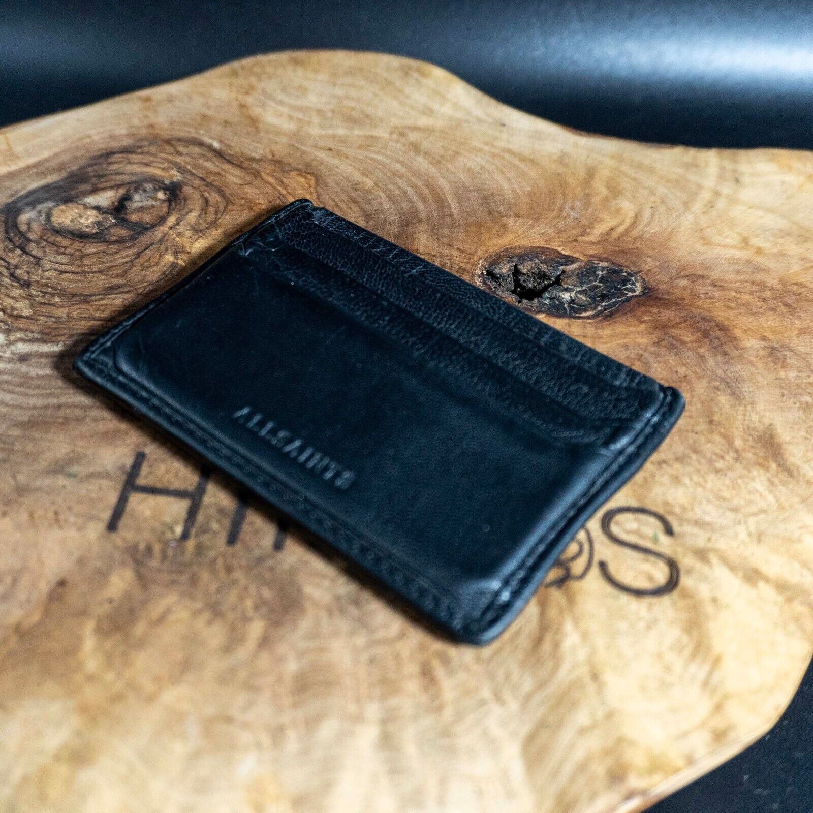 AllSaints Mens Wallet Leather Card Holder Wallet Black