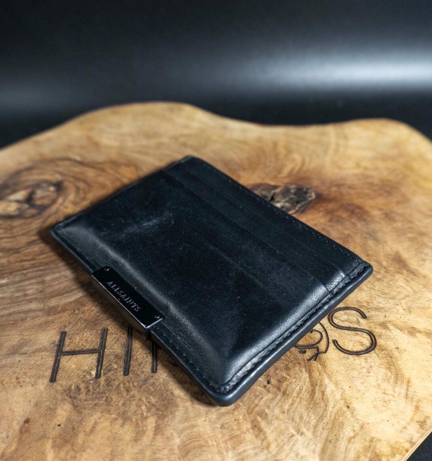 AllSaints Mens Wallet Leather Card Holder Wallet Black