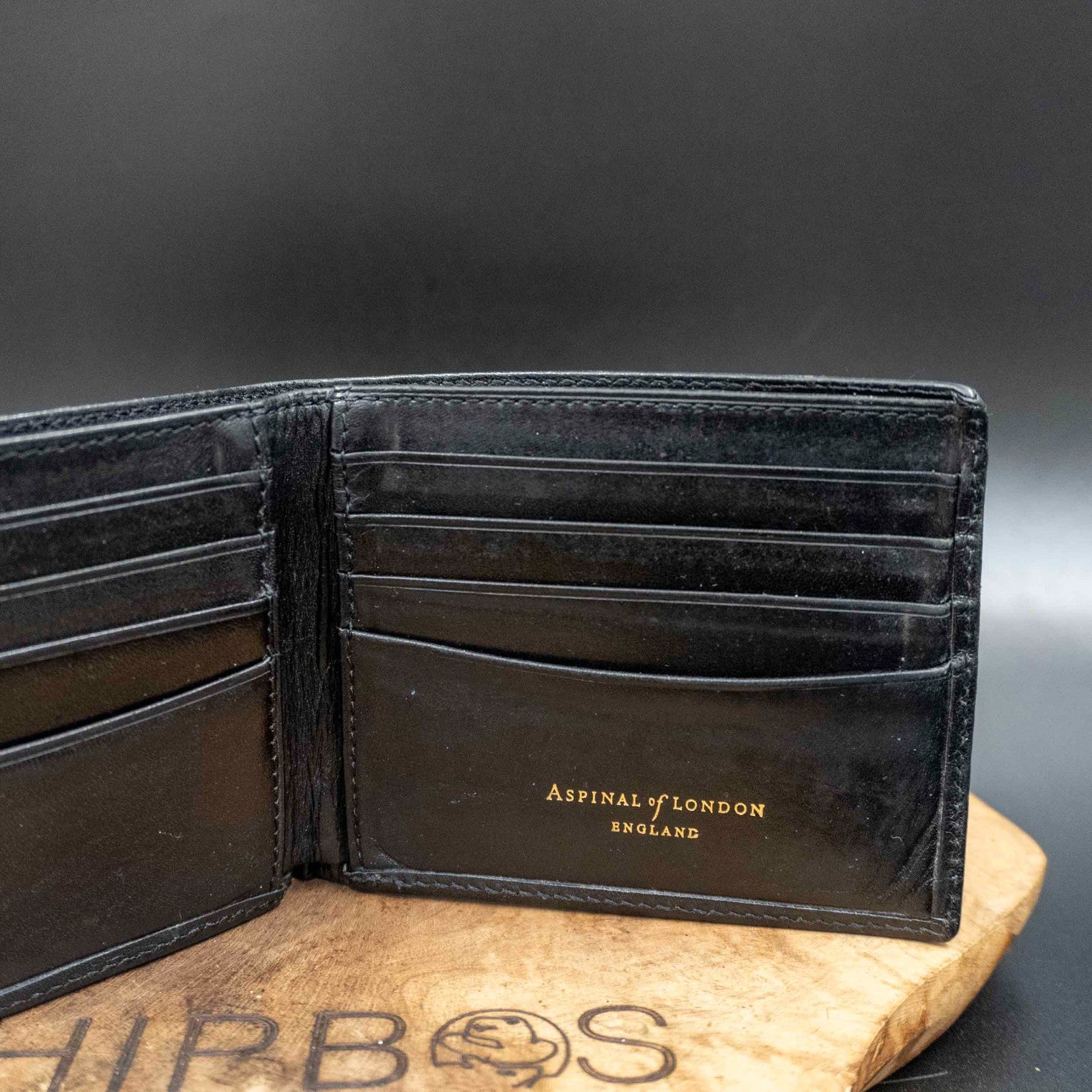 Aspinal of London Mens Wallet Vintage Leather Bifold Card Wallet Black