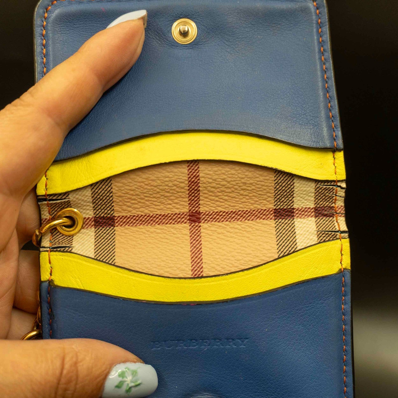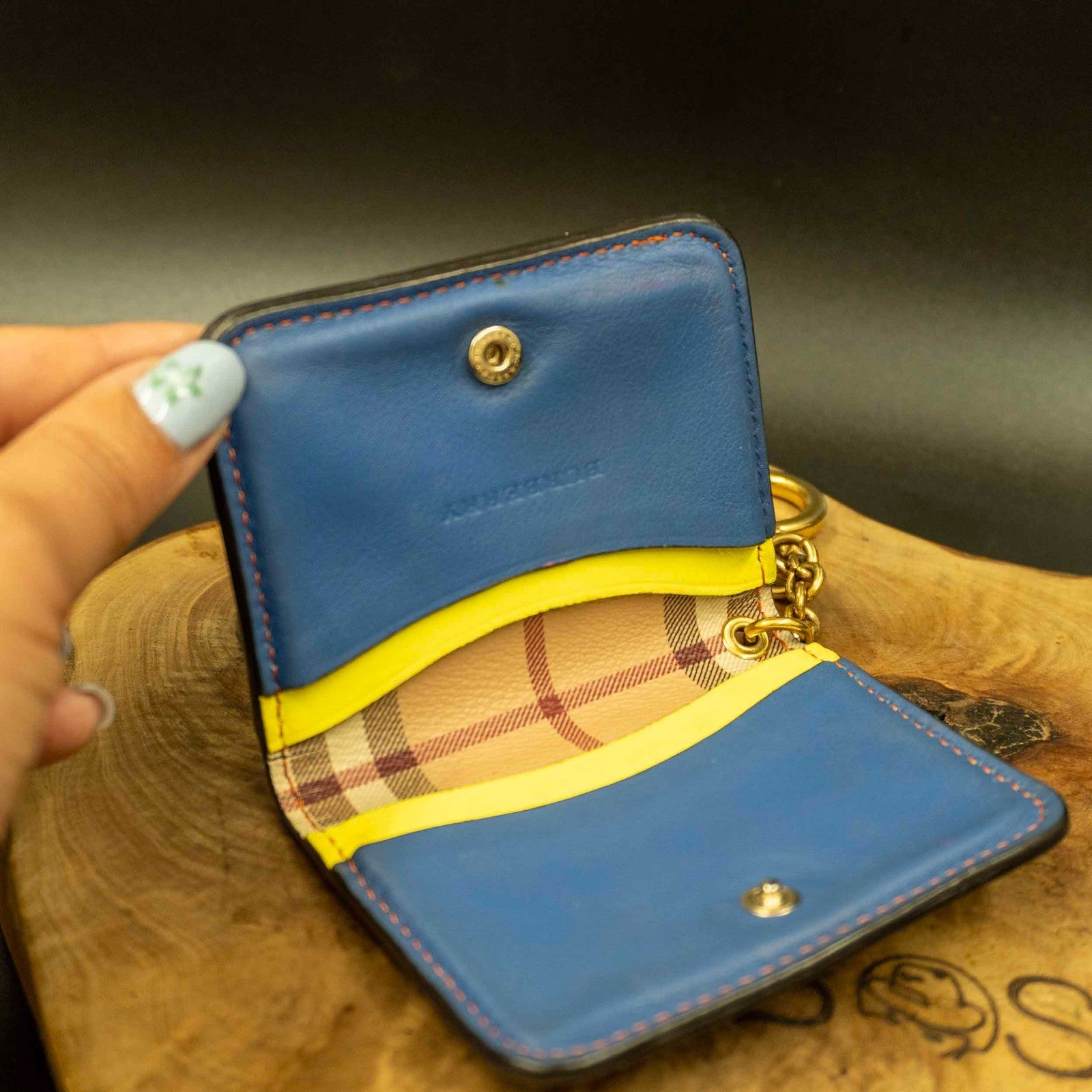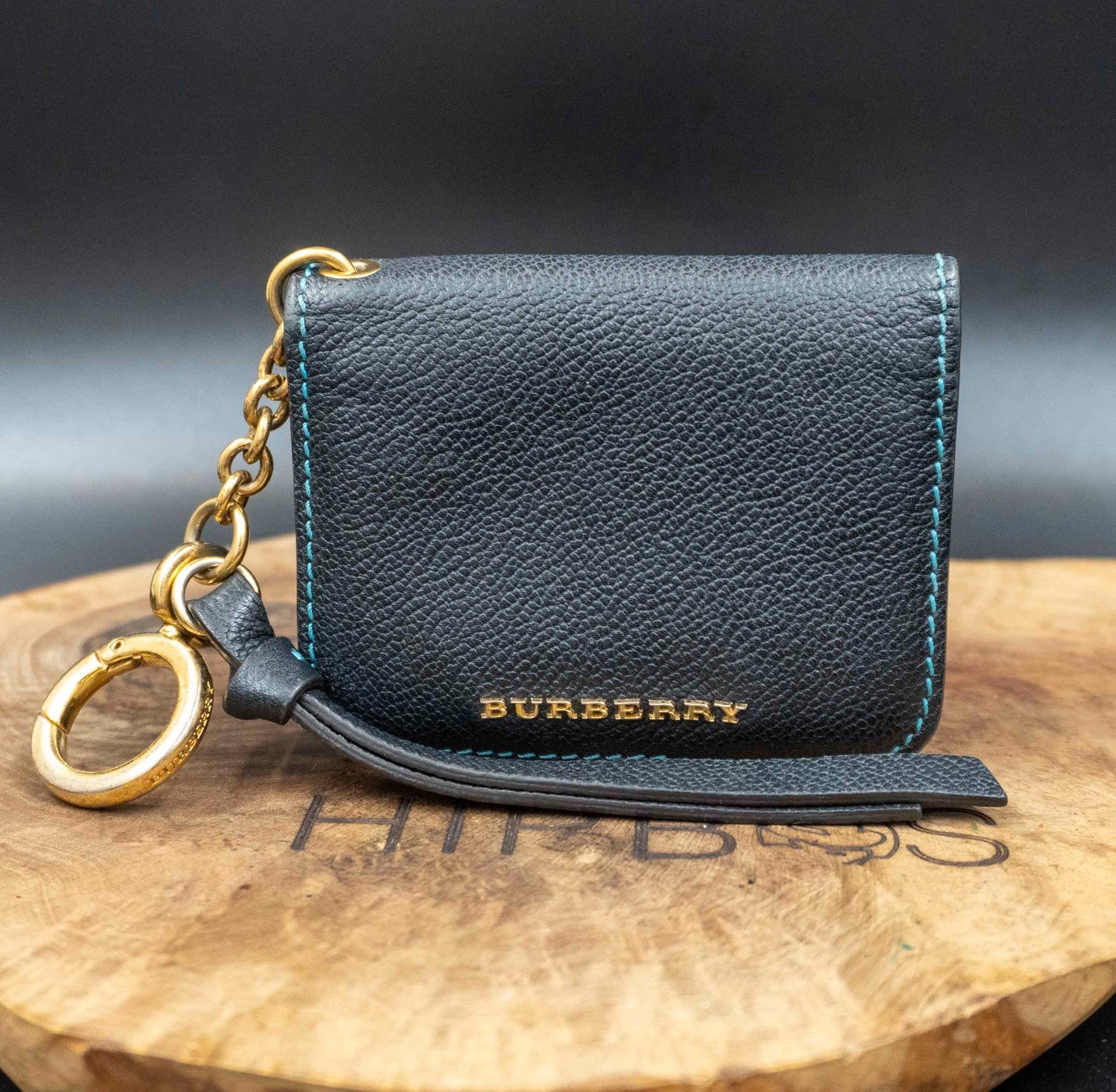 Burberry Authentic Leather Keychain Card Holder Card Wallet Blue