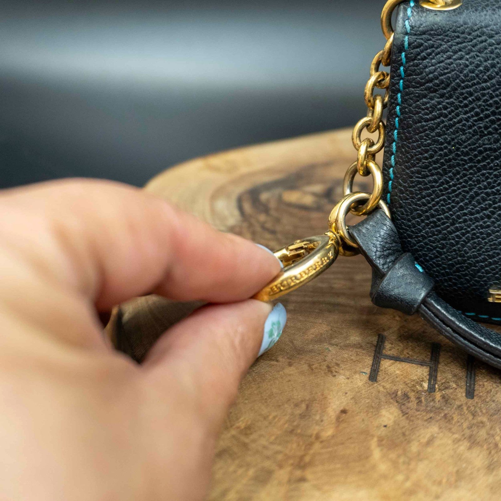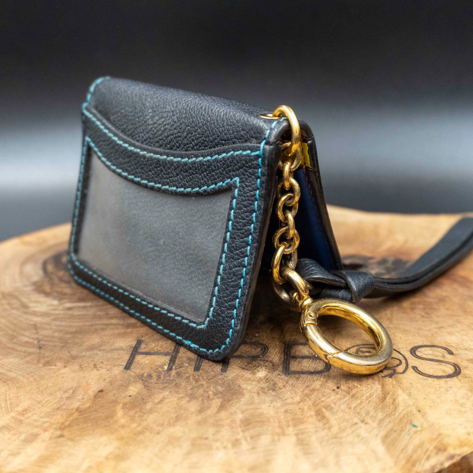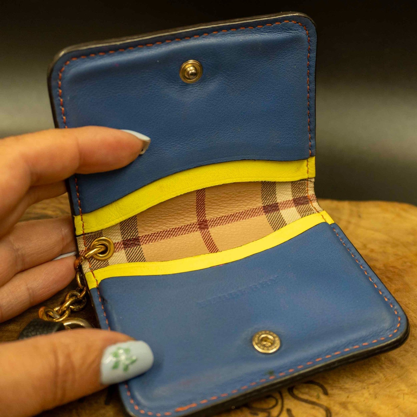 Burberry Authentic Leather Keychain Card Holder Card Wallet Blue