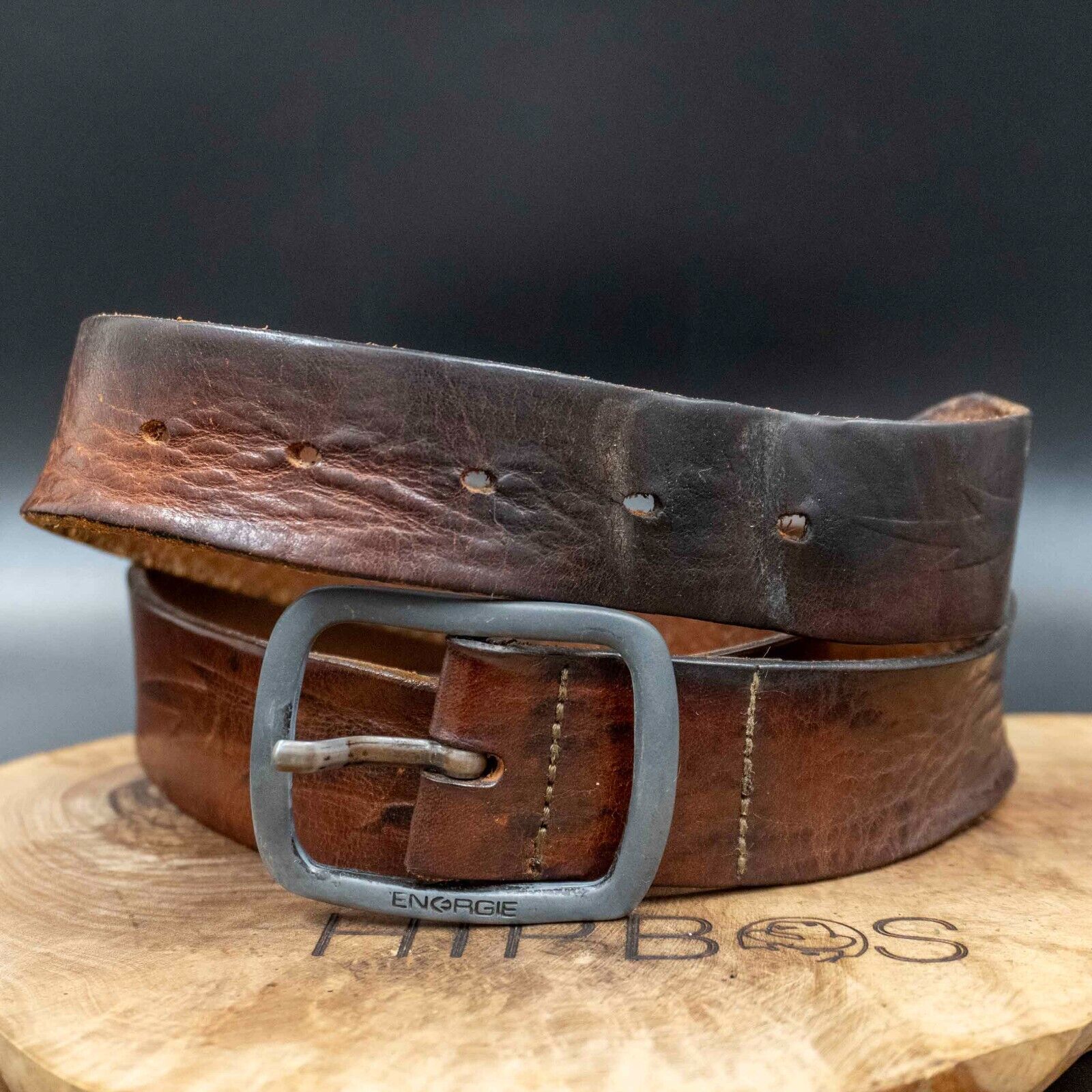 Energie Mens Belt Vintage Leather Belt Jeans Leather Belt Brown Size 36