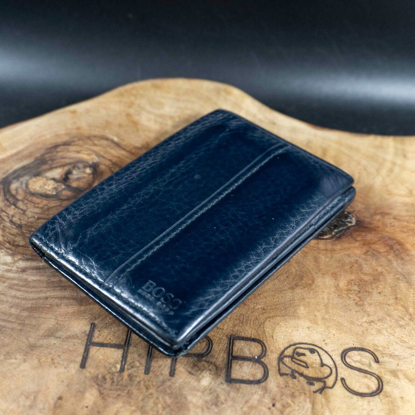 Hugo Boss Mens Wallet Case Bifold Leather Business Card Wallet Card Wallet Blue
