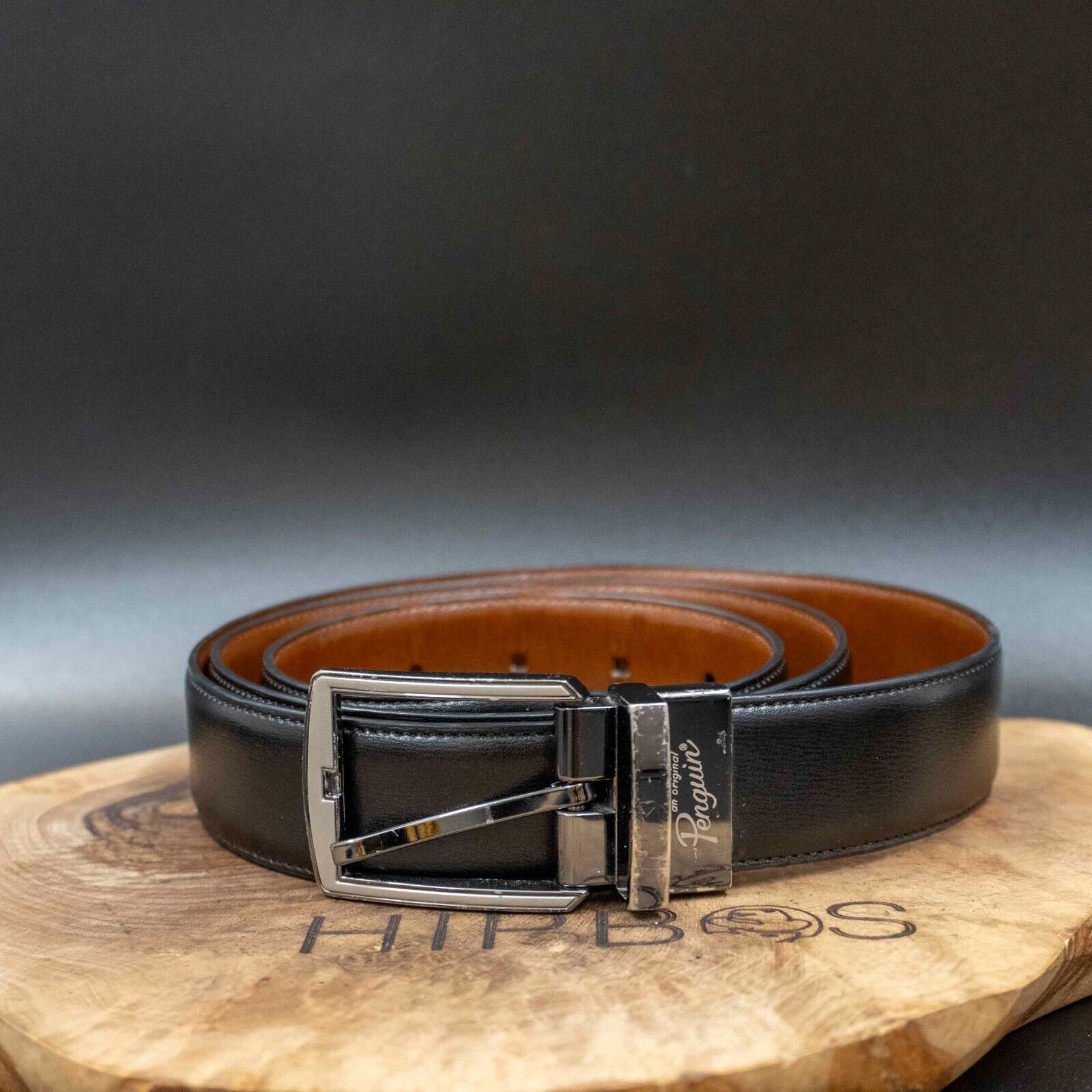 Penguin Mens Belt Reversible Leather Jeans Belt Black Brown Size 40