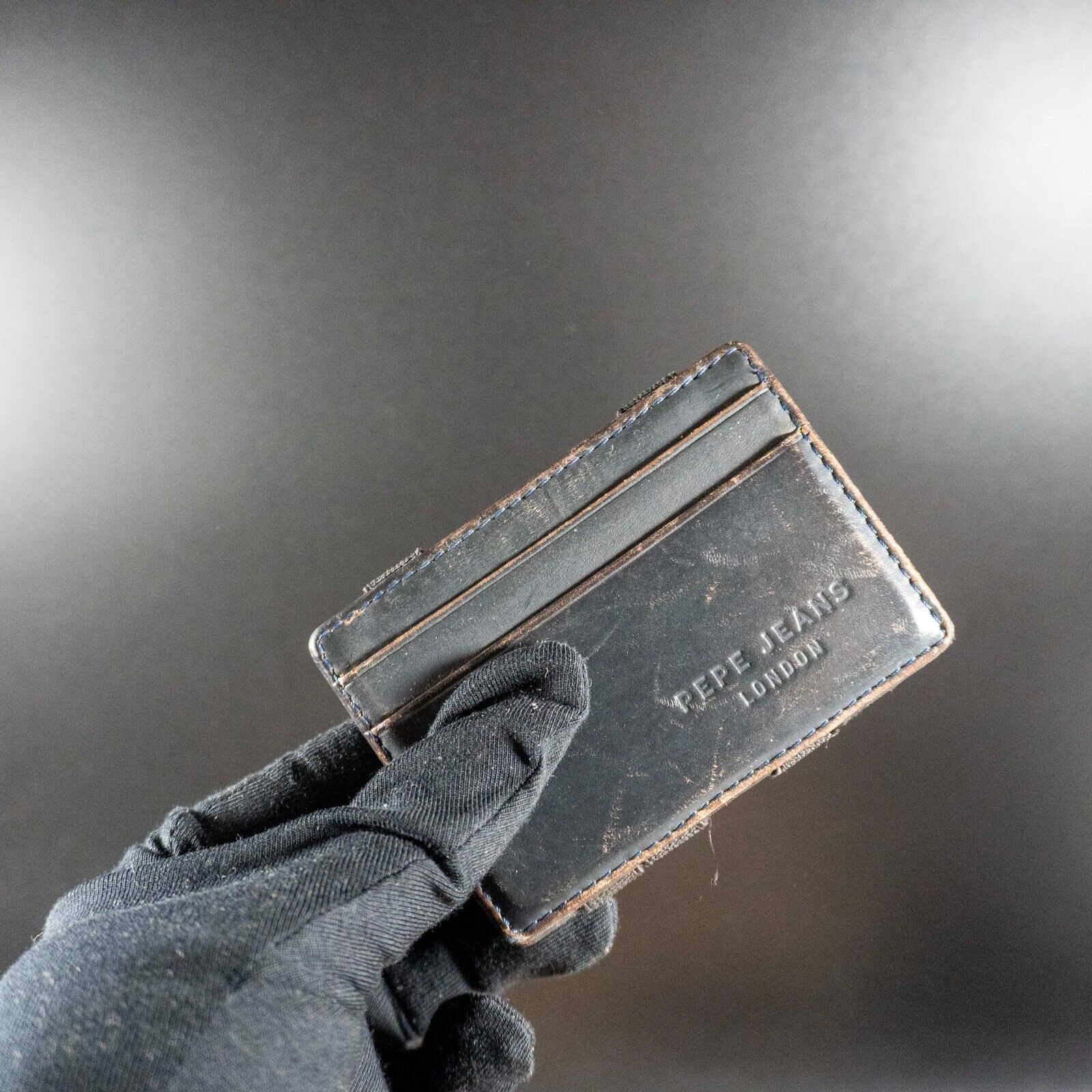 Pepe Jeans Mens Card Holder Vintage Leather Card Holder Wallet Black