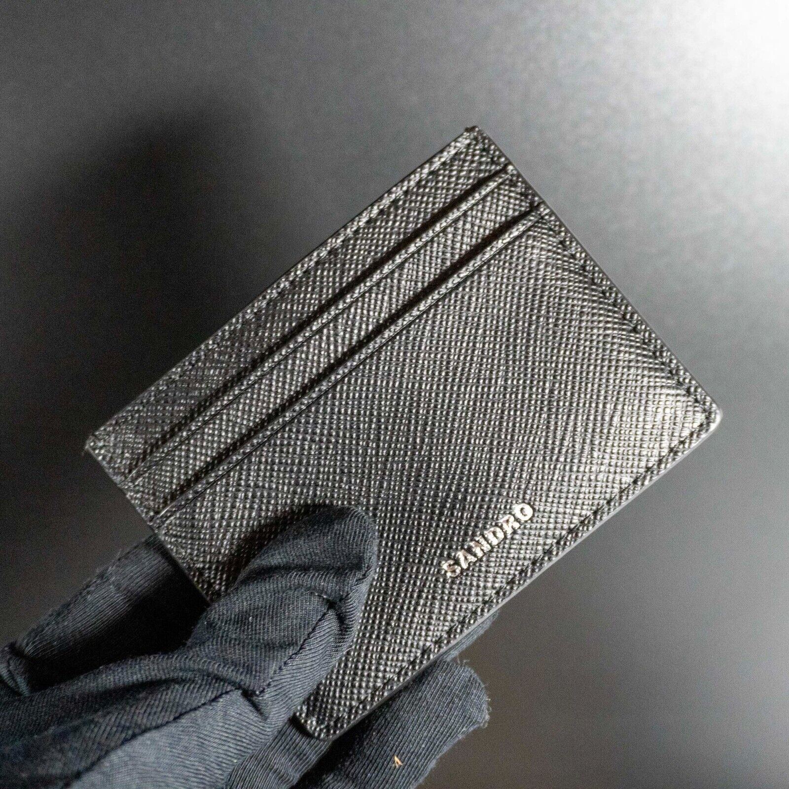 Sandro Leather Card Holder Embossed Logo Wallet Black Authentic